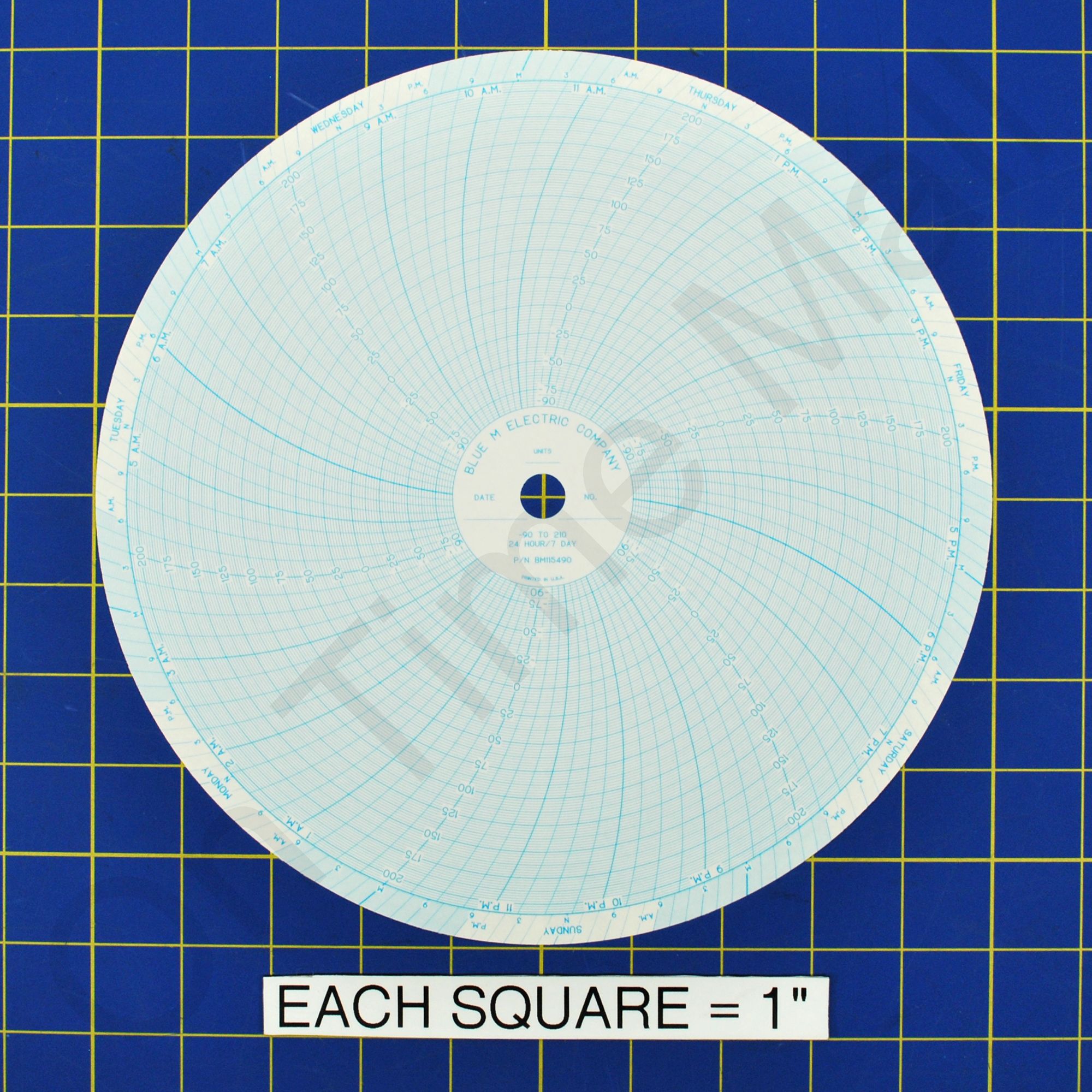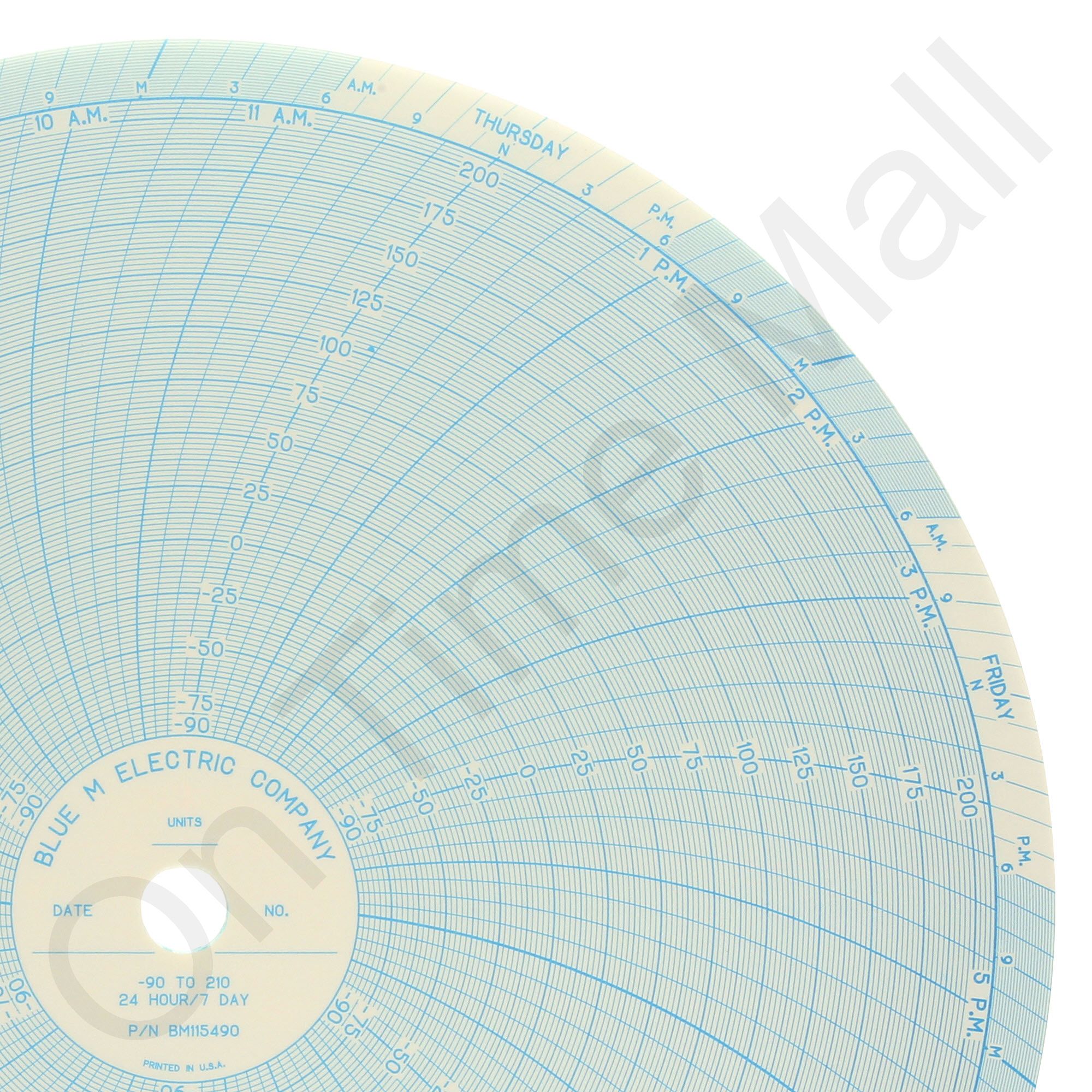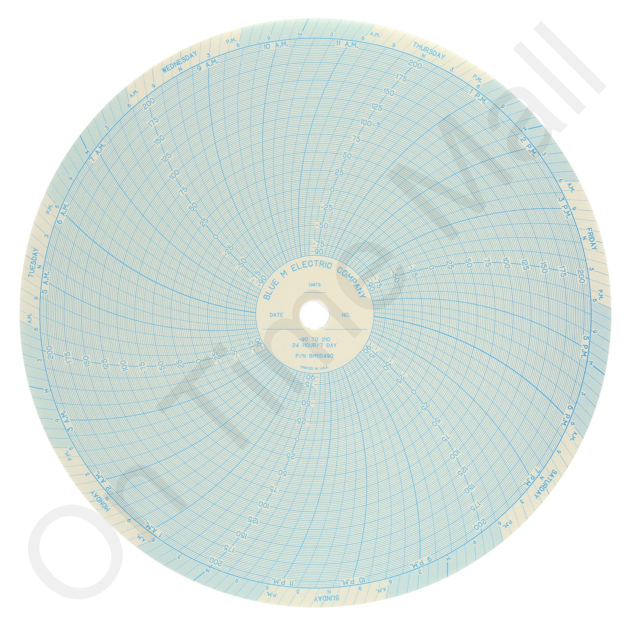 Blue M BM115490 Circular Charts. Replacement circular charts for Blue M industrial chart recorder. Package contains 100 circular charts.