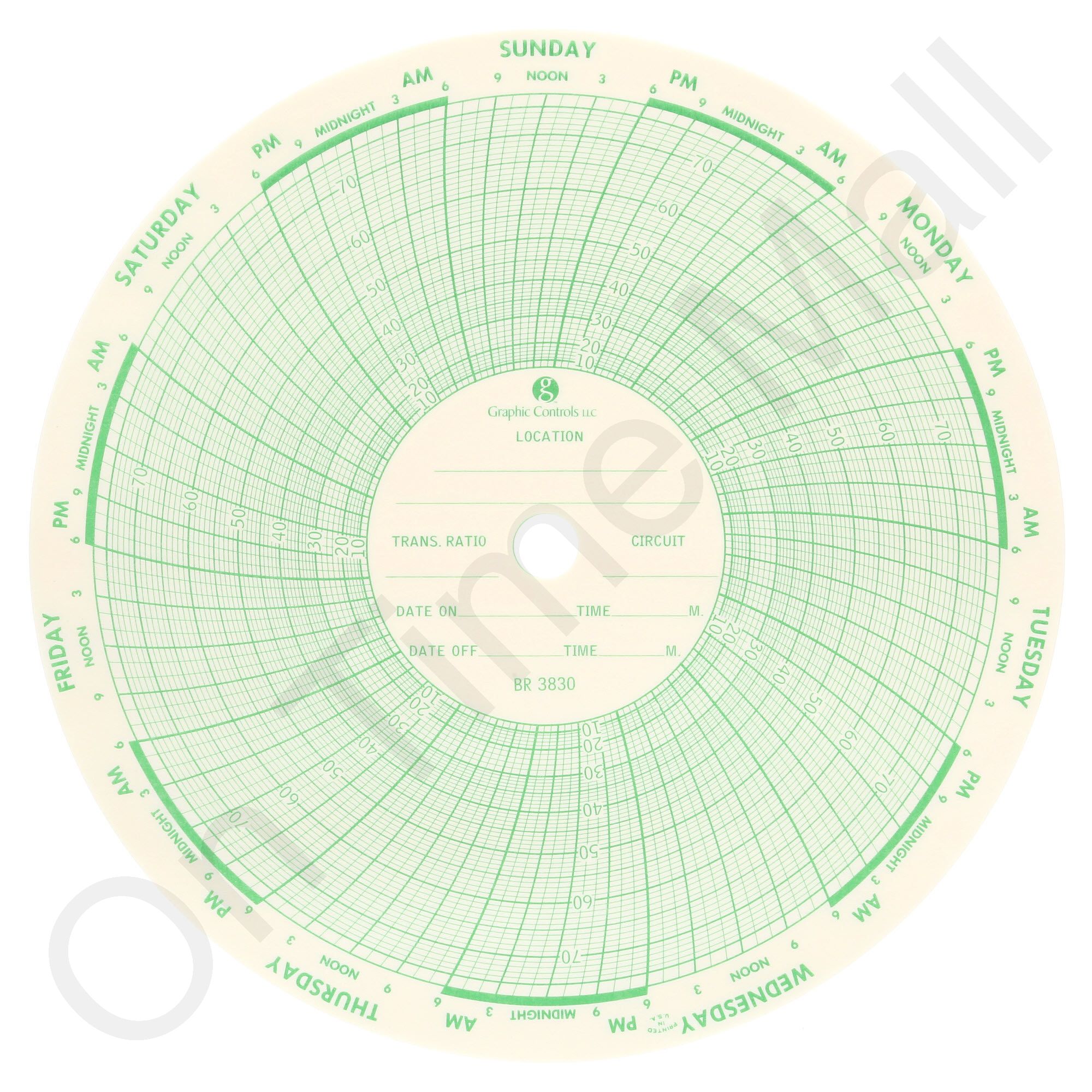 Bristol 3830 Circular Charts. Replacement chart paper for Bristol industrial chart recorder.Package contains 100 circular charts.