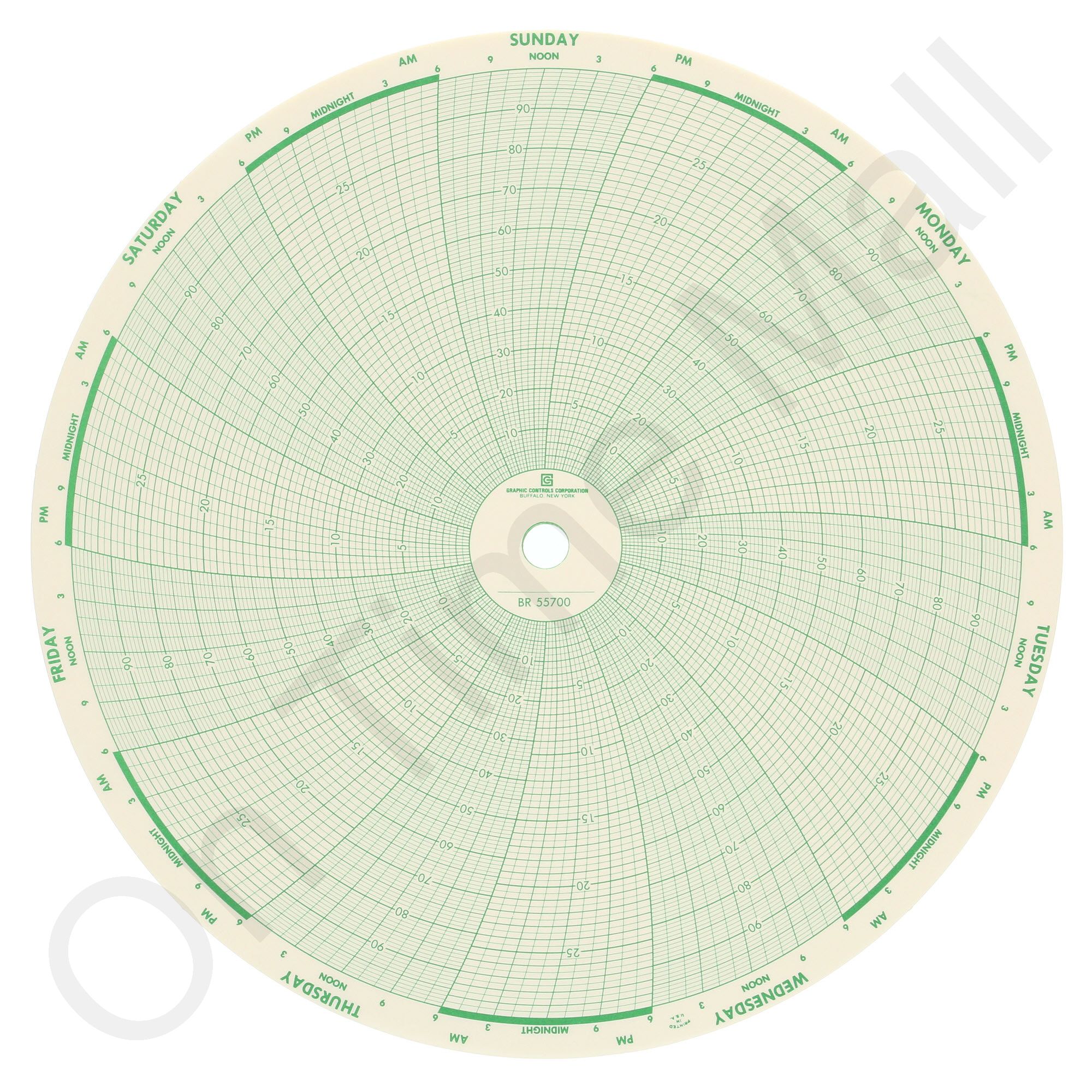 Bristol 55700 Circular Charts. Replacement chart paper for Bristol industrial chart recorder. Package contains 100 circular charts.