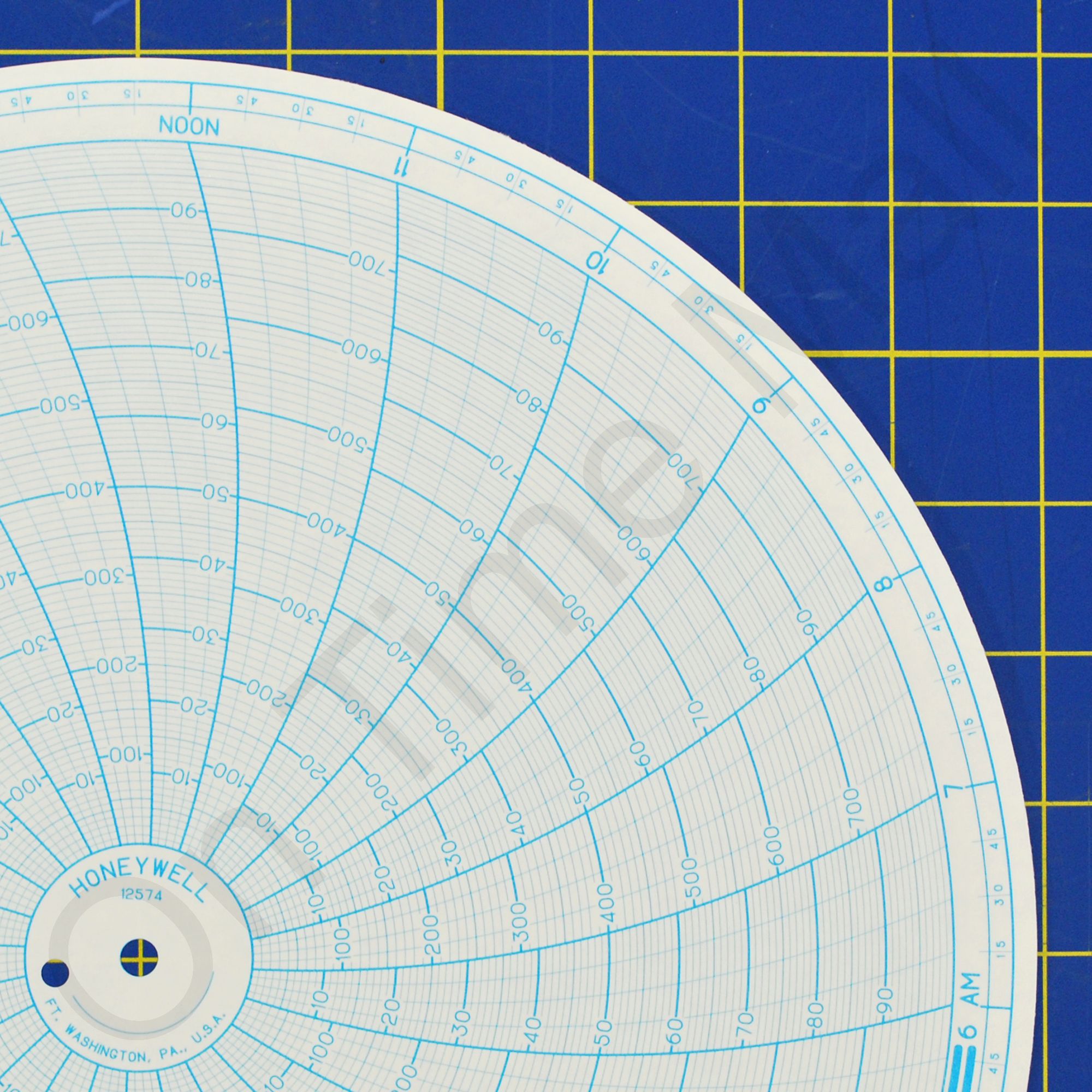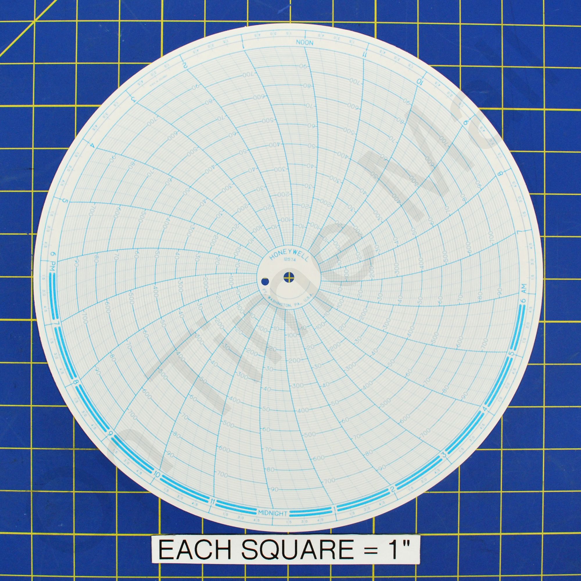 Replacement 12 inch round circular charts for Honeywell industrial chart recorder. Package contains 100 circular charts.