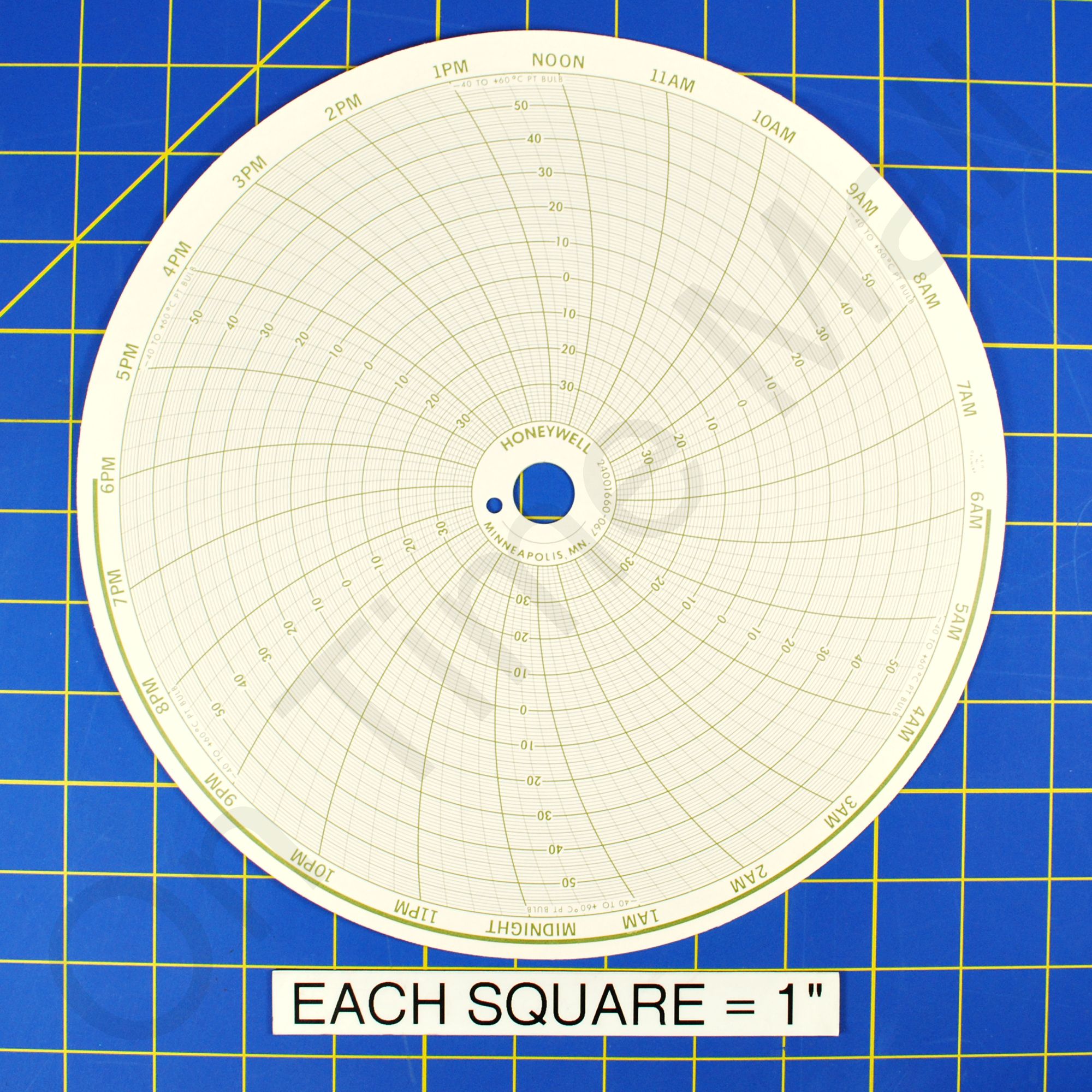 Replacement 10 inch round circular charts for Honeywell industrial chart recorder. Package contains 100 circular charts.