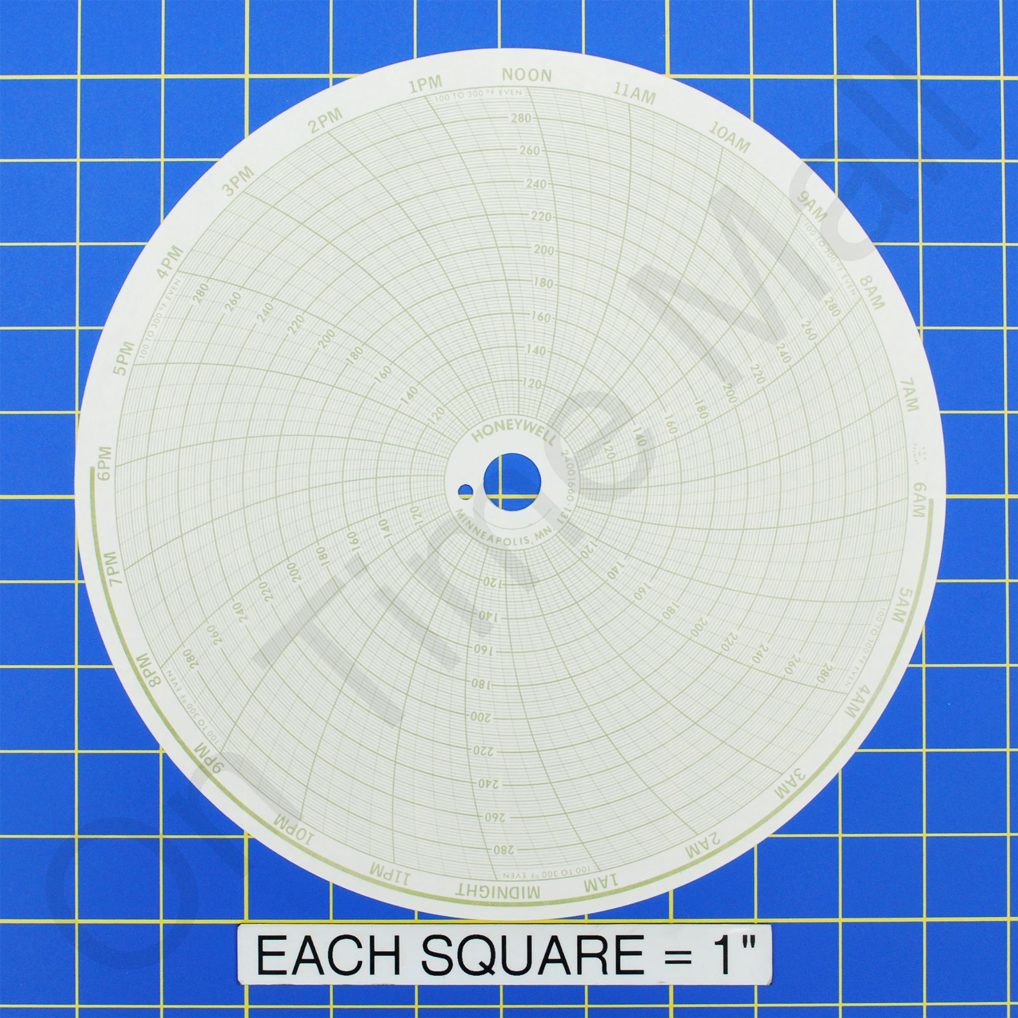Replacement 10 inch round circular charts for Honeywell industrial chart recorder. Package contains 100 circular charts.