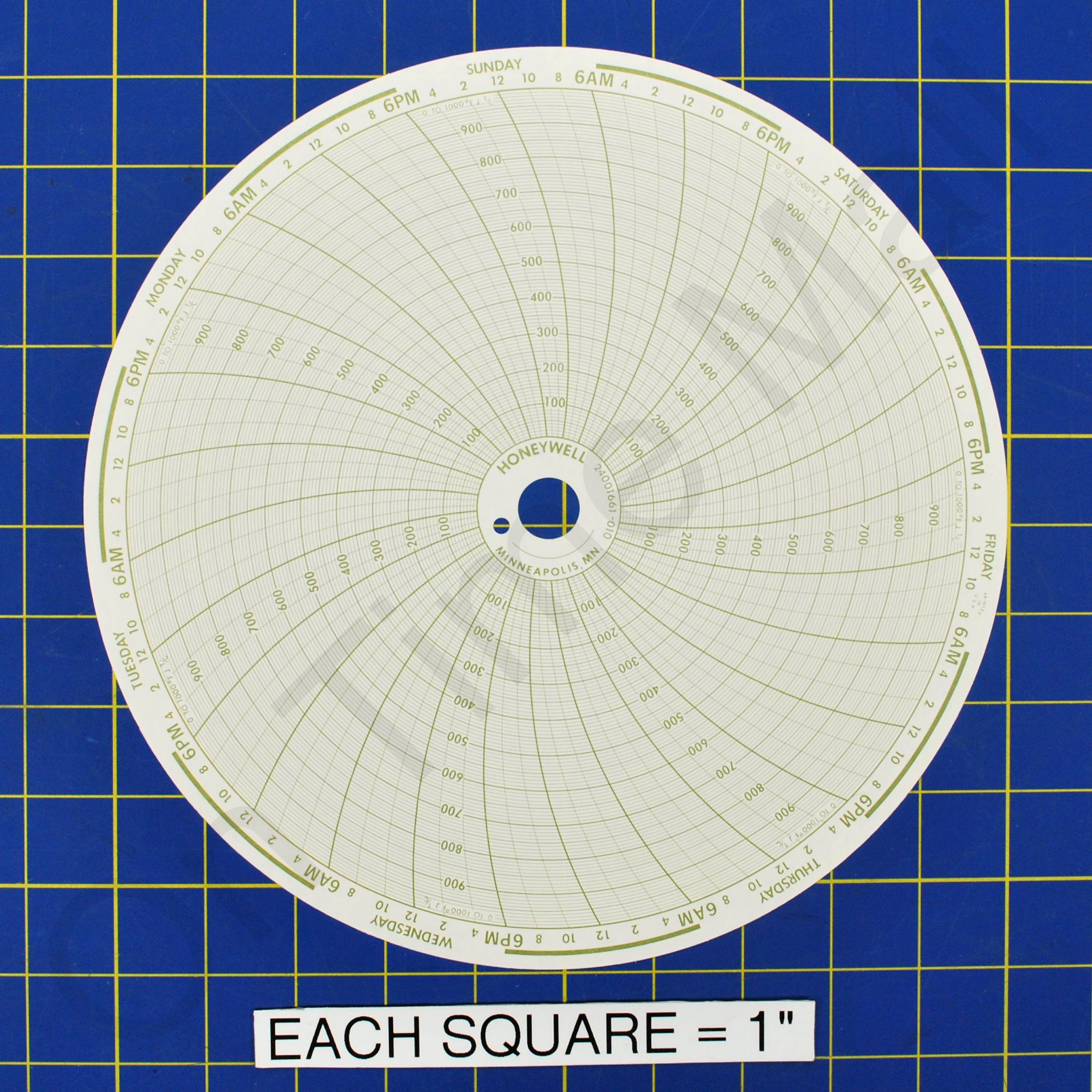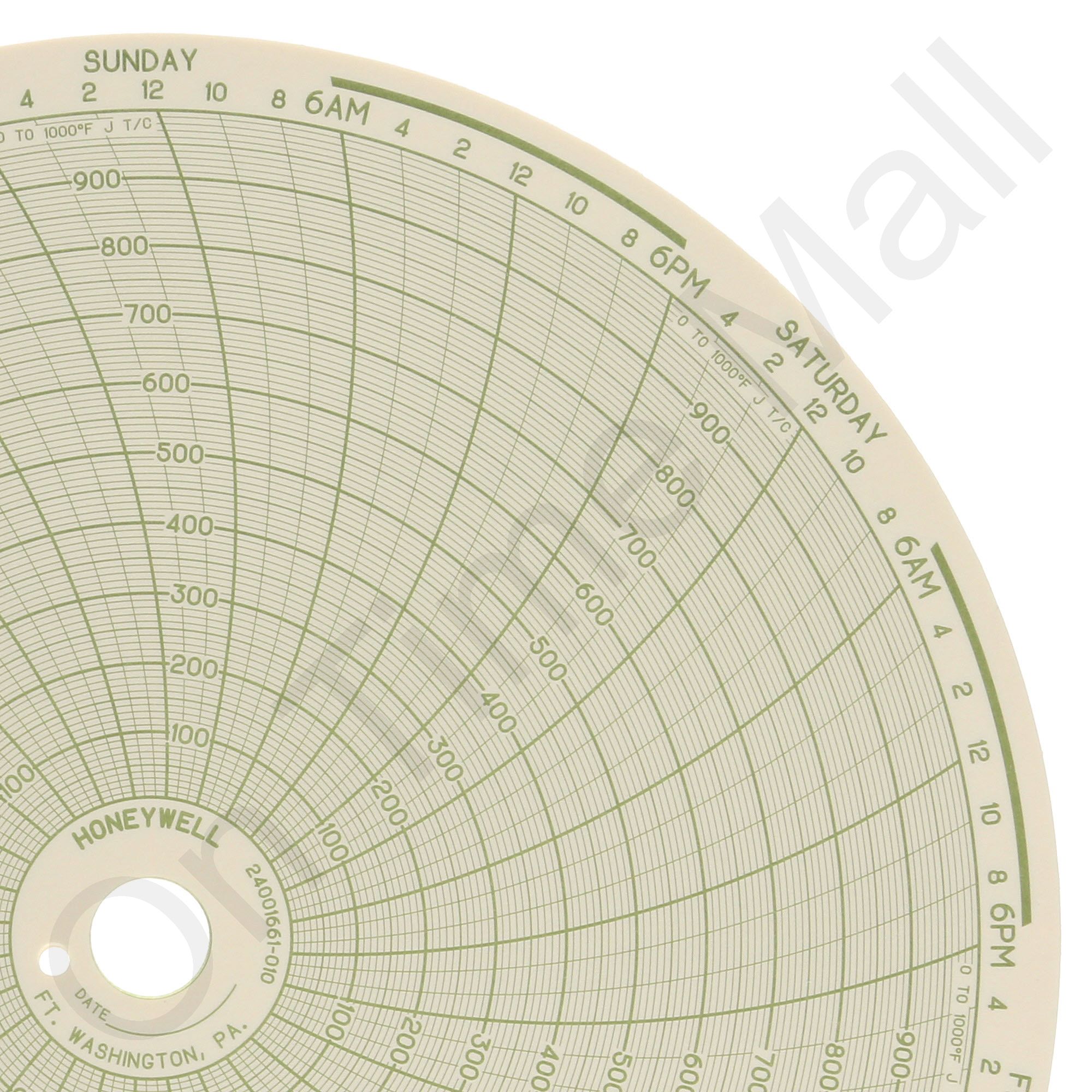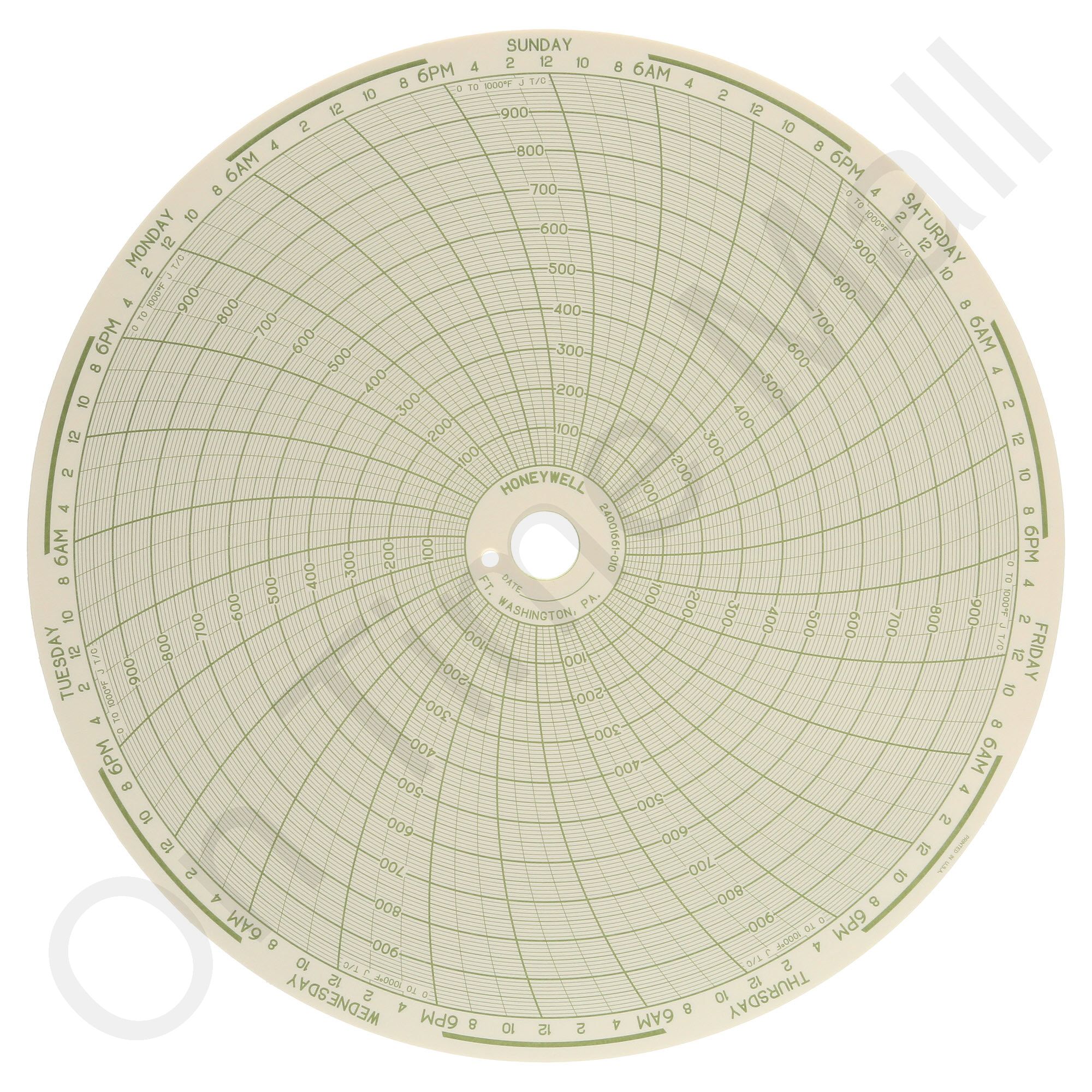 Replacement 10 inch round circular charts for Honeywell industrial chart recorder. Package contains 100 circular charts. Size: 10.313 inch Rotation: 7 Day Range: (0) – (1000) J Style Thermocouple