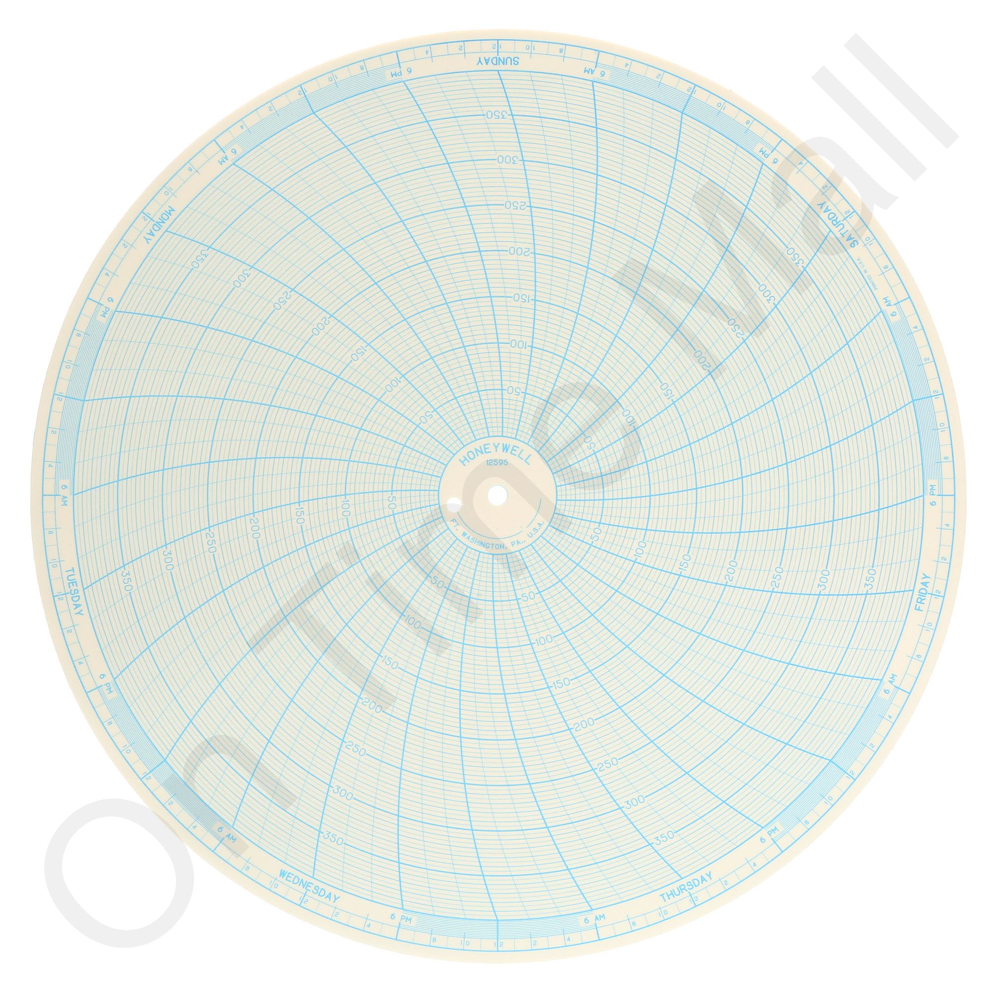 Replacement 10 inch round circular charts for Honeywell industrial chart recorder. Package contains 100 circular charts.