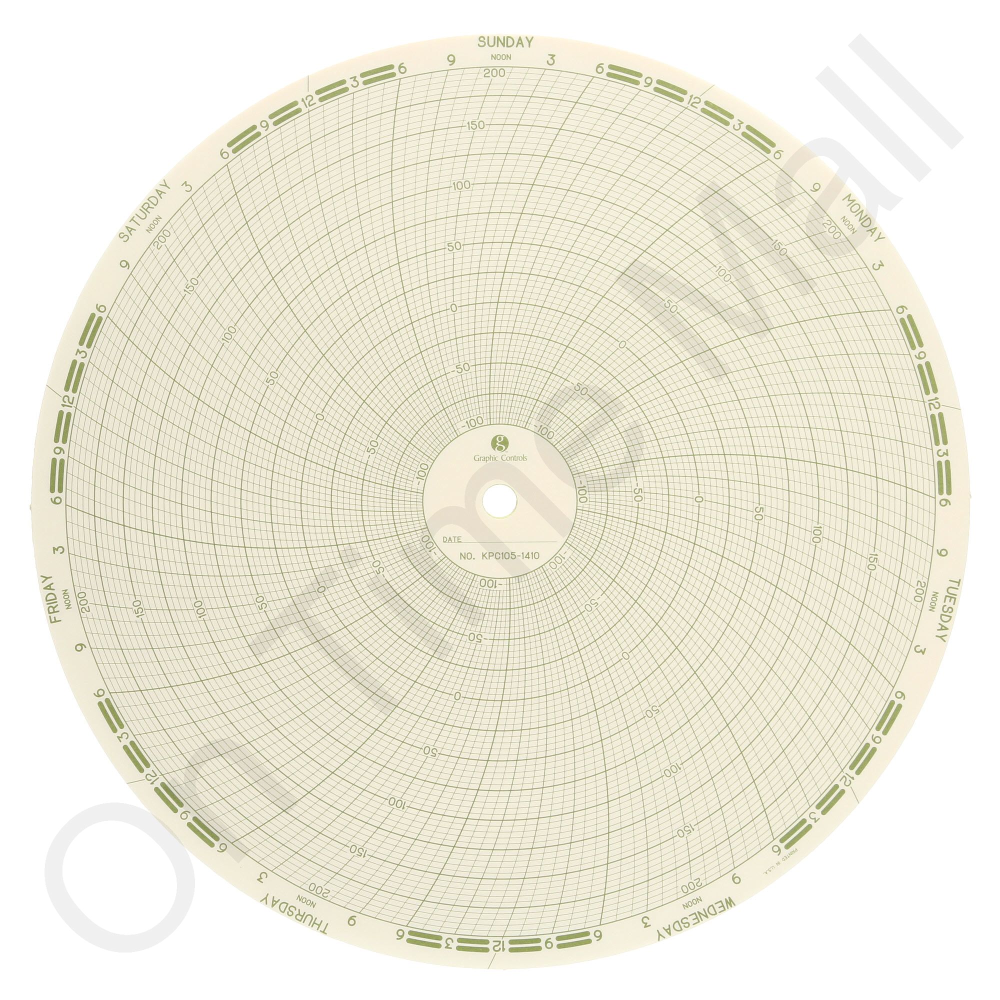 Taylor KPC105/1410 Circular Chart Paper for Taylor industrial chart recorder.